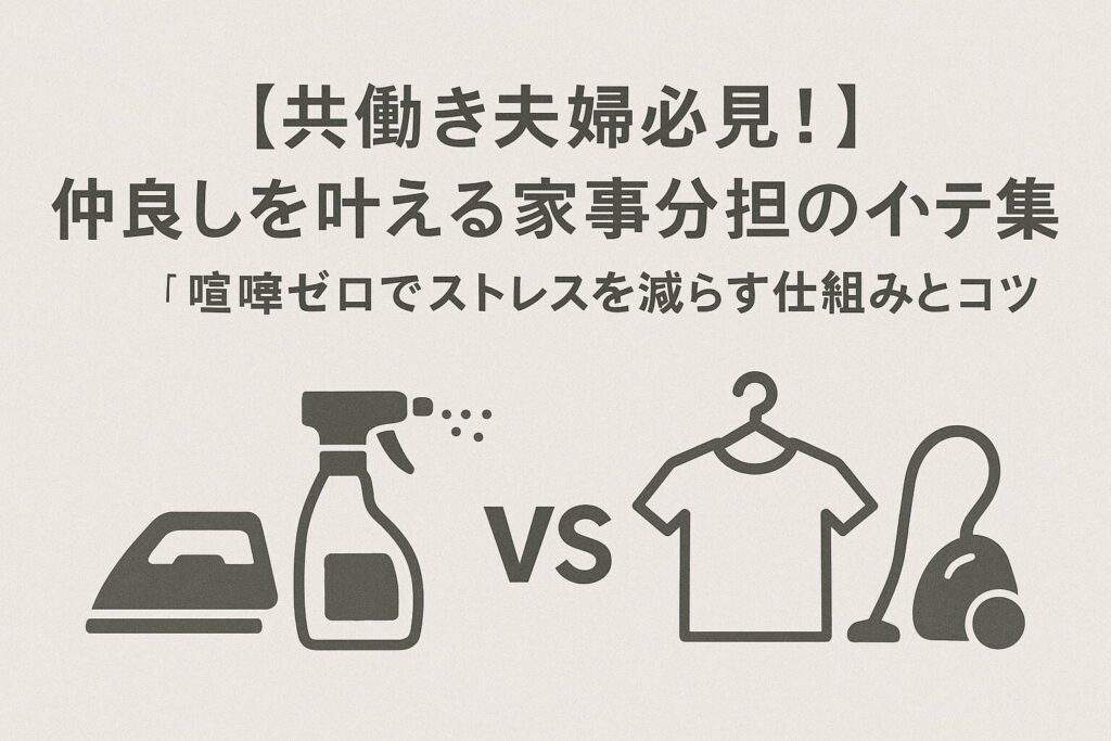 共働き夫婦必見!家事分担の不満を解消し、喧嘩ゼロを目指すための「名もなき家事の見える化」「時短家電活用」など、ストレスを減らす仕組みとコツを徹底解説。