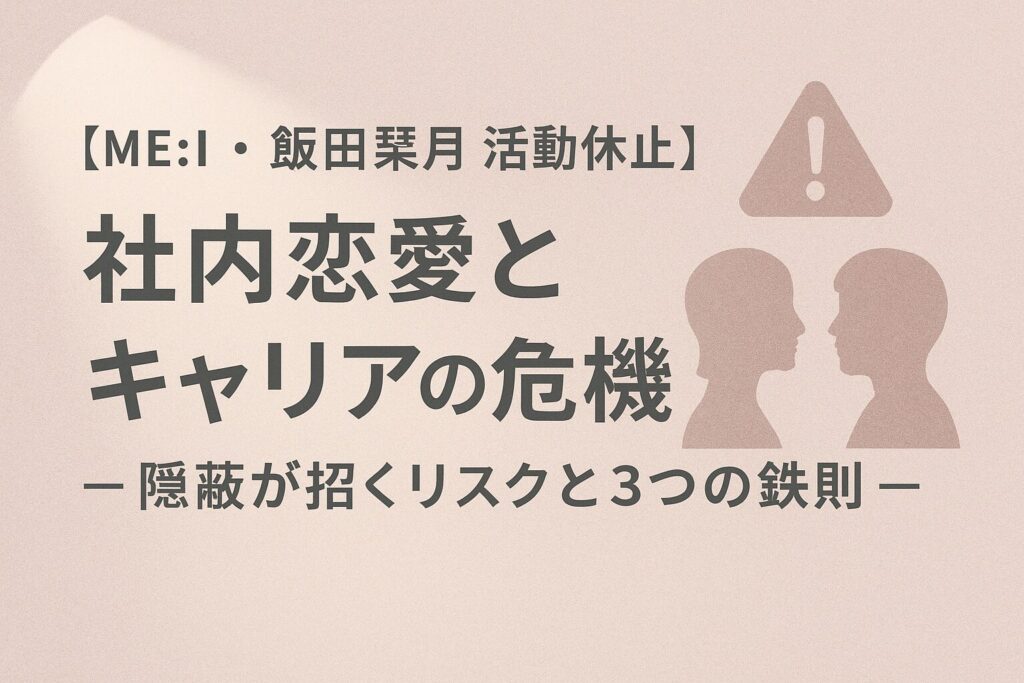 ME:Iの飯田栞月とJO1・大平祥生の活動休止報道。その裏にある「社内恋愛のリスク」と「隠蔽の代償」から、恋愛とキャリアを両立するための3つの鉄則を解説。公私混同を防ぐ実践的ルールも紹介します。デートの会話で「また会いたい」と思わせる!初デート後のLINE術と次の約束の誘い方【完全ガイド】