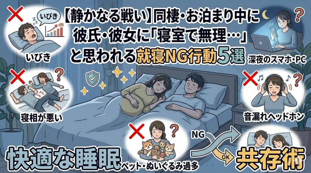 【静かなる戦い】同棲・お泊まり中に彼氏・彼女に「寝室で無理…」と思われる就寝NG行動5選と、快適な睡眠共存術