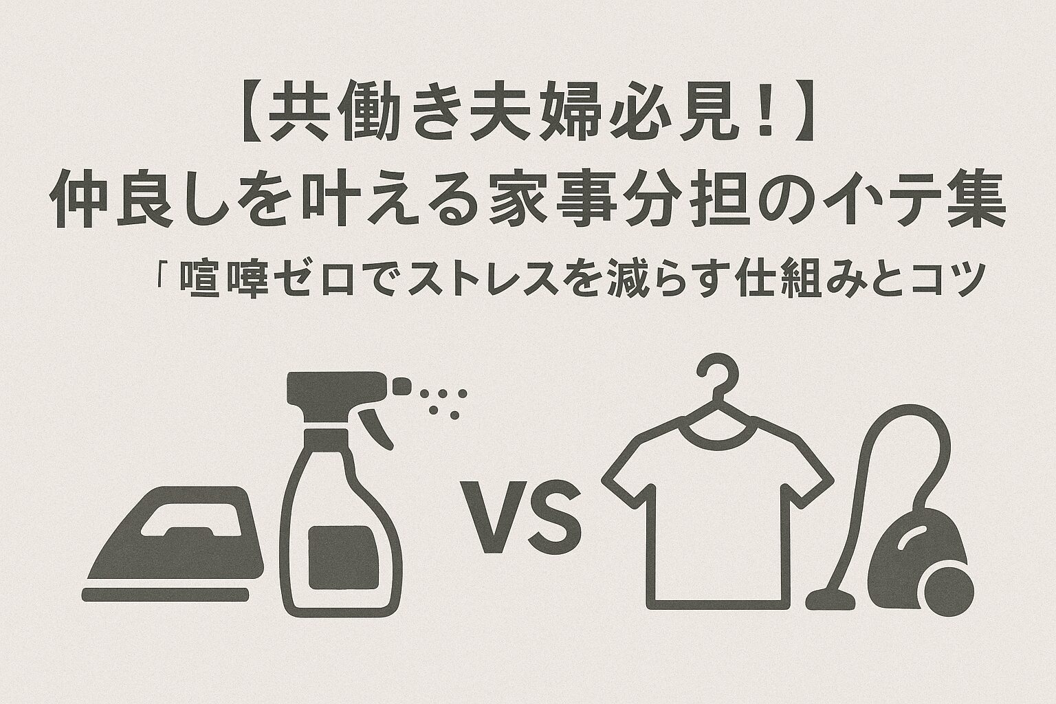 この記事では、共働き夫婦が喧嘩ゼロで、お互いに気持ちよく家事に取り組み、仲良く暮らすための仕組みとアイデアを徹底解説します。単なるタスク分けではない、**「協力し合うチーム」**になるための秘訣を知り、夫婦関係をより強固なものにしましょう!