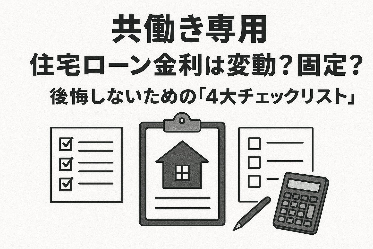 共働き夫婦の住宅ローン金利の選択は、**「どれだけリスクを許容し、安心にいくらお金を払うか」**という価値観の決め方です。変動の低コストか、固定の安心か、4つのチェックリストで答えは見つかるはずです。