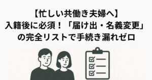 入籍後の手続きは数が多く、忙しい夫婦には負担ですが、**チェックリスト化し、役割分担**すれば確実に完了できます。手続きを終えたら、新姓の書類を手に新生活のスタートを祝いましょう!