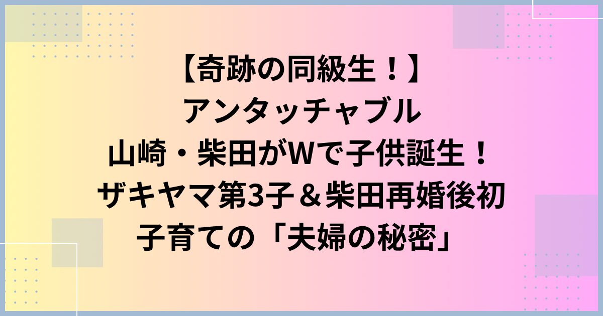 アンタッチャブルのW出産報告は、ただのハッピーNEWSで終わりません。山崎夫妻の「明るさ」と、柴田夫妻の「強さ」が、「夫婦の形は一つじゃない。決めるのは二人だ」という大切なメッセージを伝えてくれました。